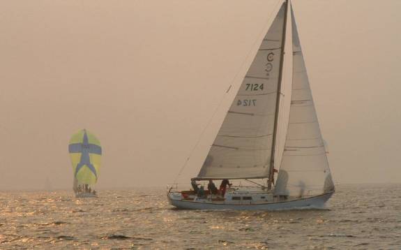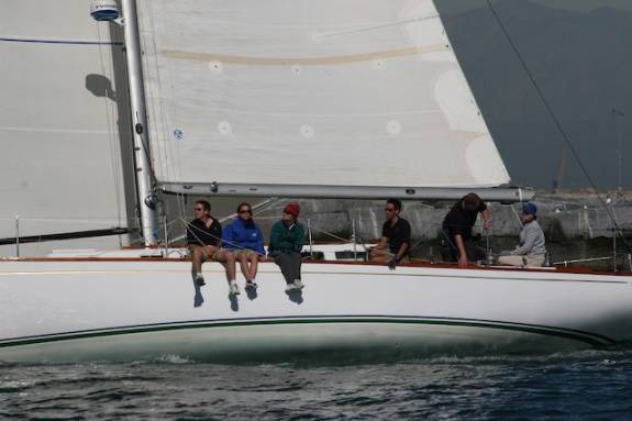 Cal 40 Strategies: In windward-leeward races, a few more bodies on the rail are fast (in L.A., at least, where we have a fairly consistent 15 kt. afternoon westerly).  The basics:  get the weight out of the ends, reduce weight where possible, gear break-downs are the skipper’s fault, smooth bottom, good sails (with good spreader patches and spreader boots), consistent crew and practice with them, conservative tactics.Concentrate on target boat-speeds.